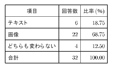 表1. テキストと画像ではどちらが見やすかったか