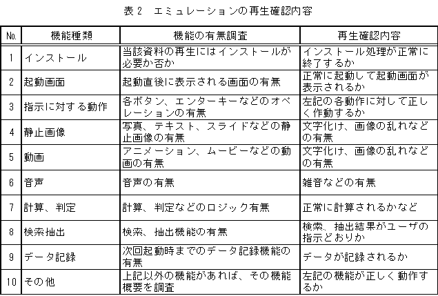 今回の調査の結果を踏まえ、電子資料への長期的アクセスを確保するためには、エミュレータは、以下の要件を備えていることが必要であると考えられる。