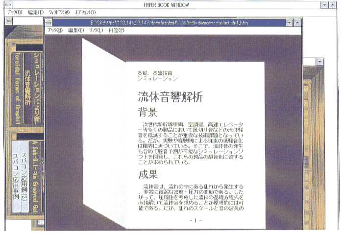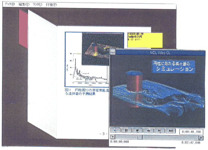 本システムでは,この考え方を基本に,独自のブラウザソフトウェア Knowledge Bookを開発した.利用者は,WWWから検索で得られた情報をこ のKnowledge BookによってHTML文書を閲覧したり,その一部に付箋を張っ てアノテーションを付けることができる.アノテーションは「個人化」の 第一の具体機能である.図4およびに図5に画面例を示す.写真やビデオ 映像はマウスでクリックすることによって別ウインドウに大きく表示させ ることができる(図5).